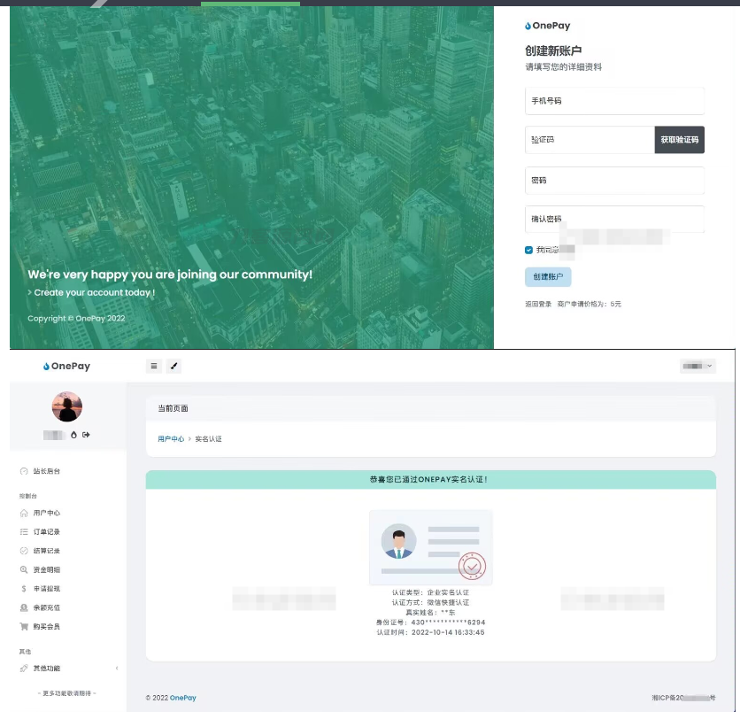 2023最新OneTheme彩虹易支付用户模板美化主题模板源码下载